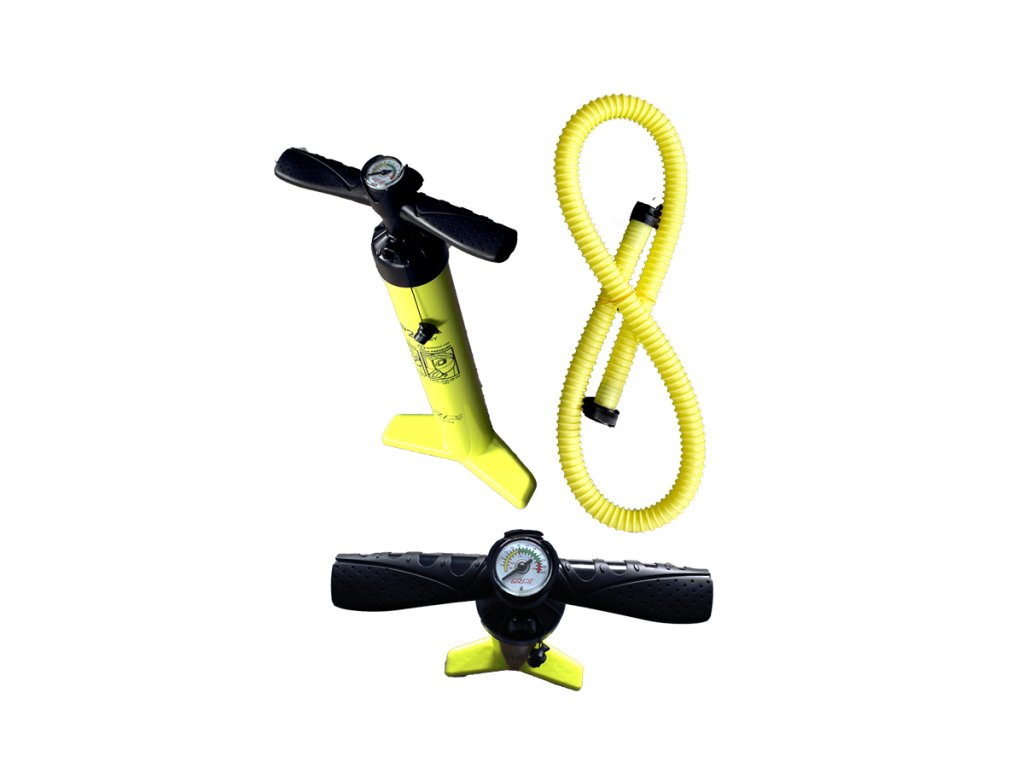 Pumpa je dvoucestná - tzn. že má přepínací výkon. V počátku pumpa nafukuje při pohybu nahoru i dolu až do dosažení dostatečného objemu vzduchu v plováku. Poté pumpu přepnete, aby foukala jen ve směru dolů a paddleboard dotlakujete na požadovanou mez.
